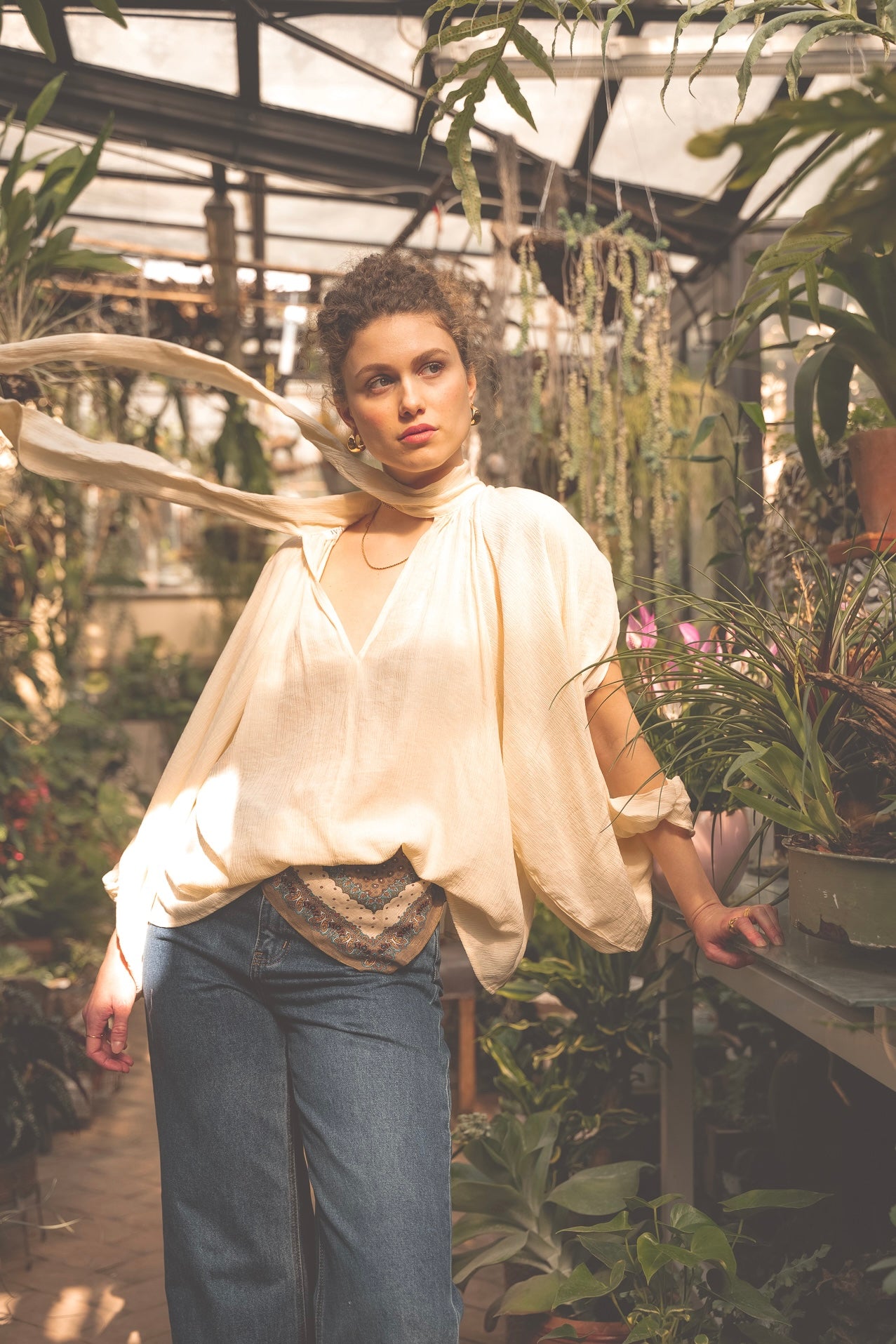 Linee fluide, fiori delicati e luce calda raccontano una femminilità spontanea.