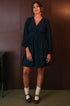 Abito corto blu navy a manica lunga, scollo a V , elastico posteriore in vita. Motivo ricamato tono su tono.