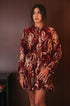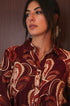 Questo abito è un'espressione di stile bohémien e raffinatezza. La sua silhouette fluida e la chiusura con bottoni verticali e la ricca stampa paisley nei toni del bordeaux e del beige creano un look d'impatto e versatile. Lo scollo a camicia valorizza la figura, mentre l'elastico posteriore in vita garantisce una vestibilità perfetta e confortevole, esaltando la silhouette in modo naturale.