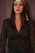Esplora l'eleganza discreta del nostro vestito floreale con scollo a V, un capo essenziale per la tua collezione. Le maniche lunghe e la fantasia di piccoli fiori rossi e verdi su sfondo scuro offrono un look sofisticato ma rilassato.