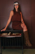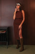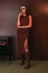 Abito Midi Aderente Caffè | Vestito Tubino con Spacco Laterale