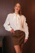 Blusa bianca motivo volant sulle maniche, laccio a cravatta regolabile , vestibilita morbida.