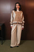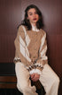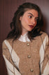 Cardigan donna color Camel a fantasia rombi, girocollo, chiusura con bottoni verticali.