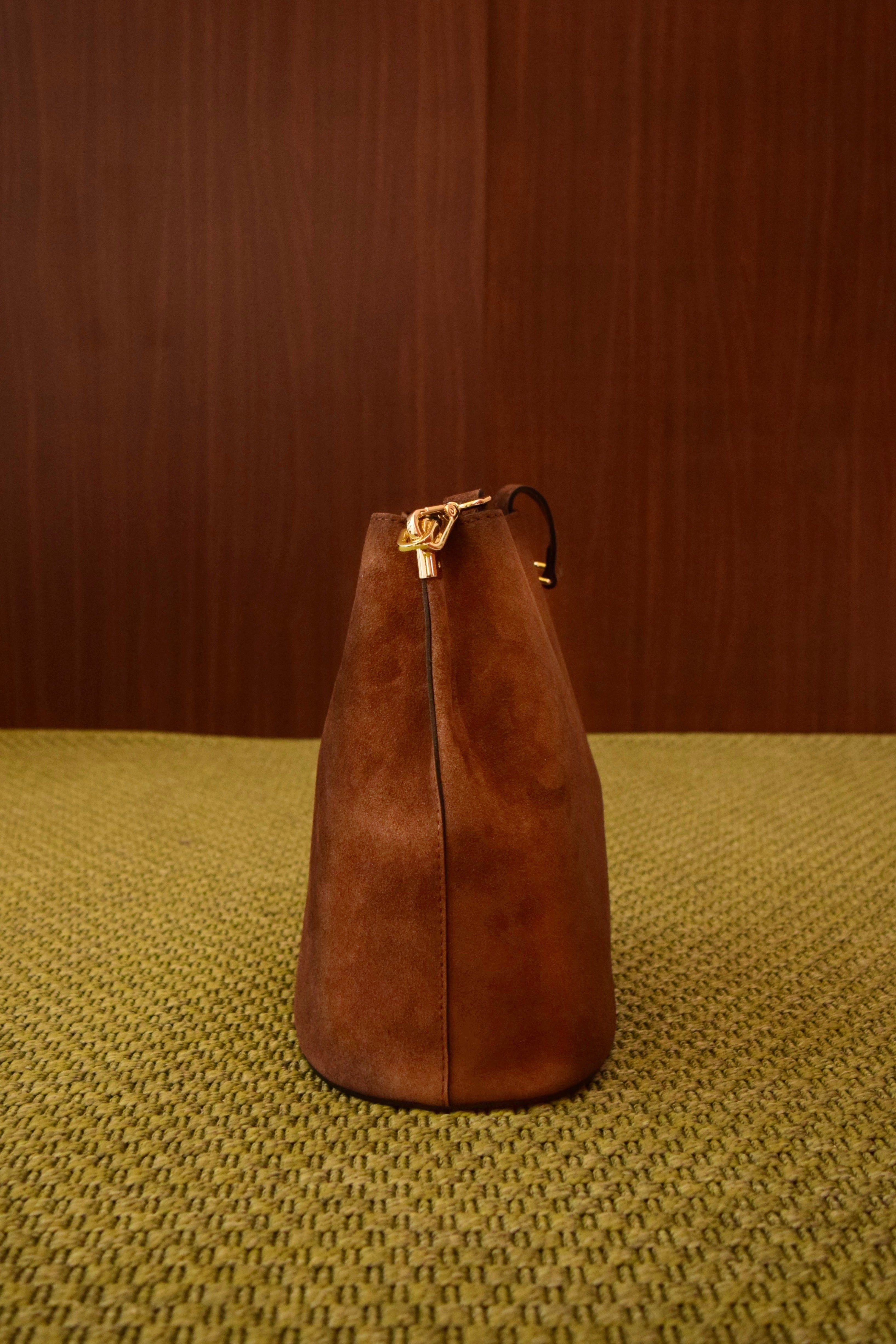 Borsa a secchiello in vera pelle color cuoio chiaro