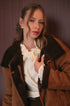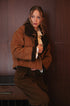 montone imbottito, un capo che unisce eleganza e comfort. Realizzata in un tessuto effetto scamosciato in una calda tonalità di marrone, questa giacca è foderata in morbida ecopelliccia, che non solo garantisce un calore ottimale, ma si estende anche all'esterno per creare un dettaglio a contrasto su colletto e polsini.