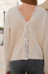 2. Cardigan Sensuale (Pizzo sul Dorso): Girala e indossala con la scollatura a V sul retro, completa di apertura con laccetti e inserto in pizzo. Un look audace e femminile, ideale da abbinare a jeans a vita alta o gonne.