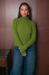 Il suo design presenta un collo alto morbido che avvolge senza stringere, offrendo il massimo comfort e calore per le giornate più fredde. La lavorazione a coste verticali (o a costine) esalta la silhouette e dona texture al brillante colore verde.