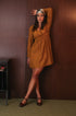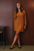Miniabito color mostarda con scollo a V