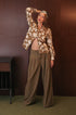Pantalone palazzo a vita alta, color oliva. laccio regolabile in vita. Due tasche alla francese , chiusura con zip e bottone.