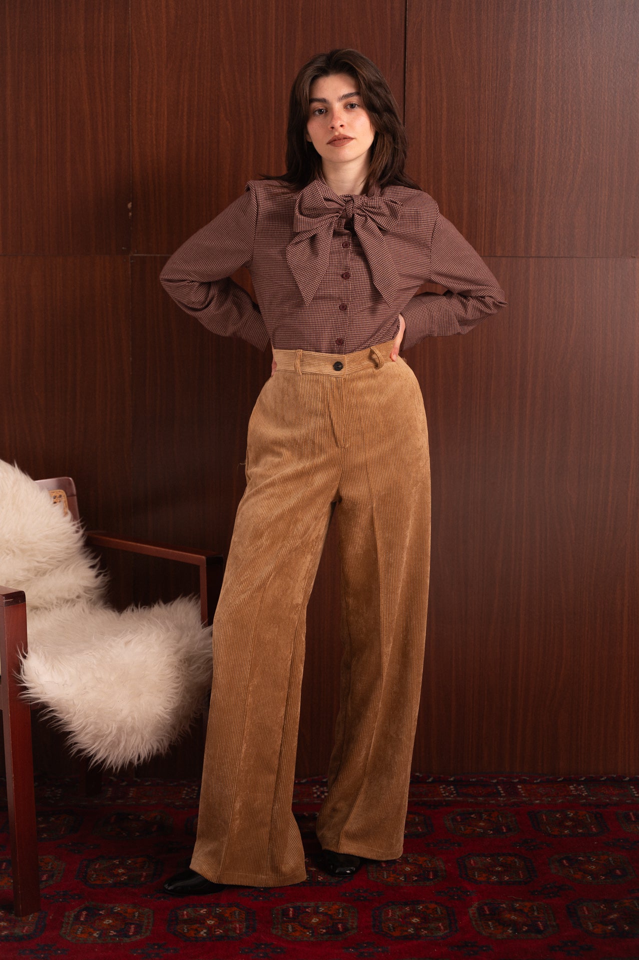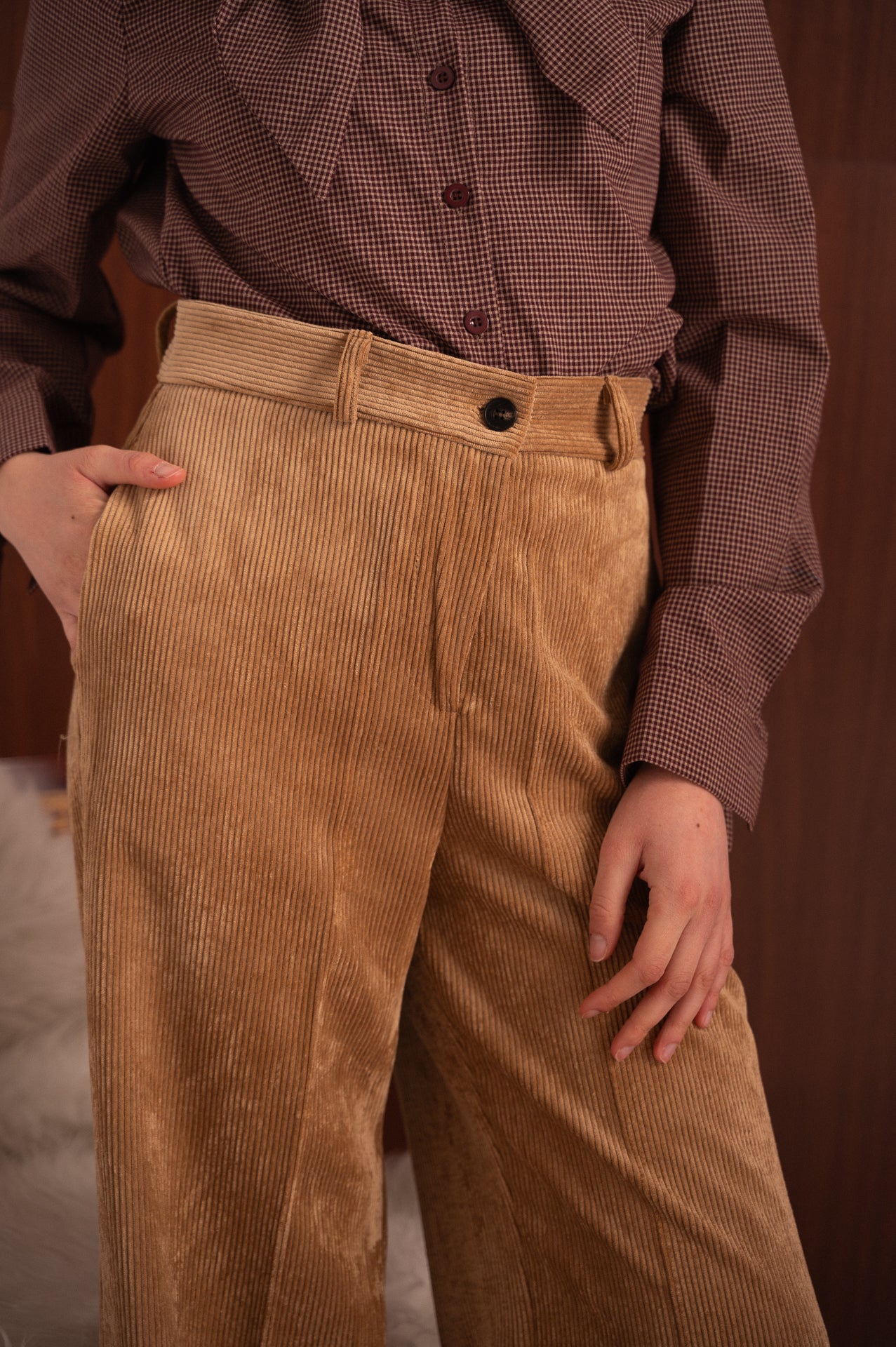 Pantaloni sabbia in velluto dal gusto elegante e contemporaneo, caratterizzati da una texture a coste morbida che dona profondità e raffinatezza al look. Il taglio sartoriale con linea dritta e leggermente ampia valorizza la figura con naturalezza, offrendo comfort e libertà di movimento. Il tessuto è studiato per garantire una resa impeccabile nel tempo: il poliestere dona struttura e resistenza, la poliammide contribuisce a una mano più morbida e piacevole sulla pelle, mentre una piccola percentuale di elastan assicura elasticità e comfort nei movimenti, migliorando la vestibilità complessiva. La tonalità sabbia neutra li rende estremamente versatili e facili da abbinare, perfetti sia per outfit quotidiani curati sia per composizioni più ricercate.