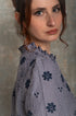 La camicia Margherita nasce da un equilibrio delicato tra romanticismo e quotidianità. Il cotone 100% accoglie una micro fantasia a quadretti blu notte impreziosita da piccoli fiori ricamati che richiamano l’immaginario botanico della collezione. Il colletto con rouge morbide incornicia il viso con eleganza spontanea, mentre la linea fluida accompagna il corpo senza costringerlo.
