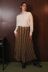 Scopri la nostra Gonna Midi Plissé, il capo perfetto per unire tendenza, eleganza e comfort. Caratterizzata da un'affascinante fantasia geometrica a dischi (o mezze lune) nei toni caldi del Verde Oliva, Marrone e Beige, questa gonna aggiunge dinamicità ad ogni tuo movimento.