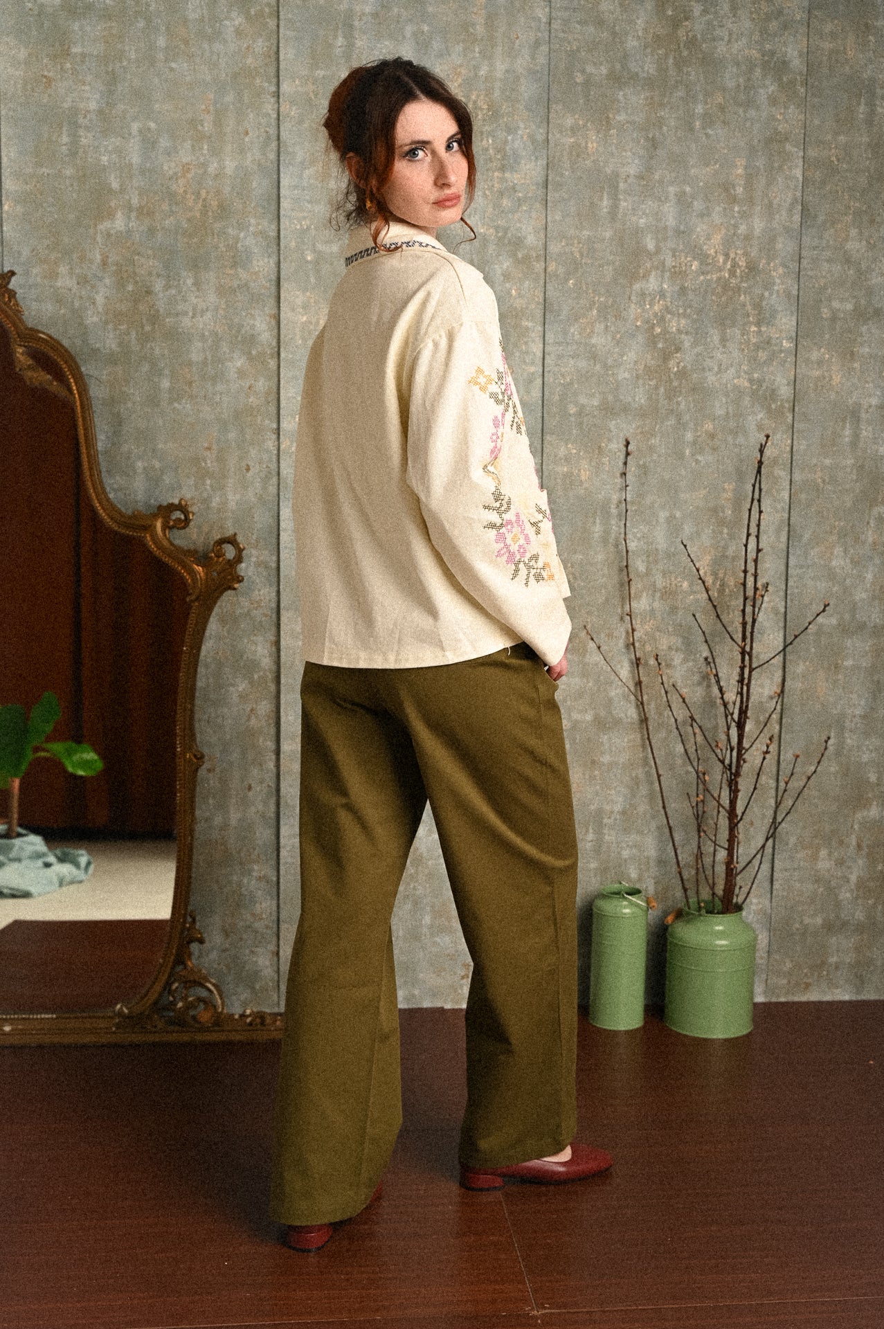 Il pantalone Ulivo nasce da una palette naturale e profonda, ispirata ai toni della terra. Realizzato in cotone 100%, ha una mano asciutta ma morbida che accompagna il movimento con naturalezza. La linea è straight relaxed, leggermente ampia sulla gamba, con vita media che valorizza senza costringere.