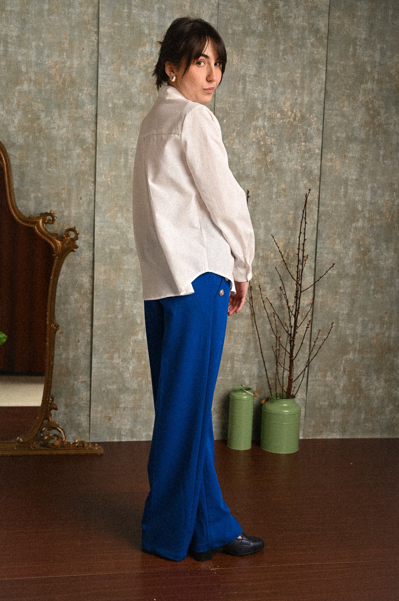 Il pantalone Maggiorana in blu elettrico è un capo deciso e contemporaneo, pensato per dare carattere anche ai look più essenziali. La linea a palazzo slancia la figura e accompagna il movimento con eleganza, grazie a una vestibilità fluida e confortevole.