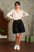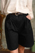 Shorts da donna in cotone 100% dal taglio pulito e contemporaneo, perfetti per la stagione primavera-estate. Il design a vita media con cintura valorizza la silhouette, mentre le pinces frontali donano struttura e un’eleganza naturale. Le tasche laterali aggiungono praticità senza rinunciare allo stile.