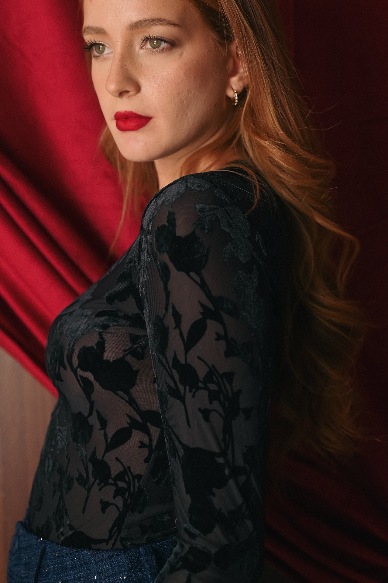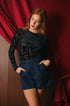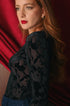 • Lavorazione Devoré: La tecnica Devoré (o Burnout) crea un suggestivo contrasto di ricami vellutati su un tessuto di base trasparente/semitrasparente, conferendo profondità e mistero al capo.