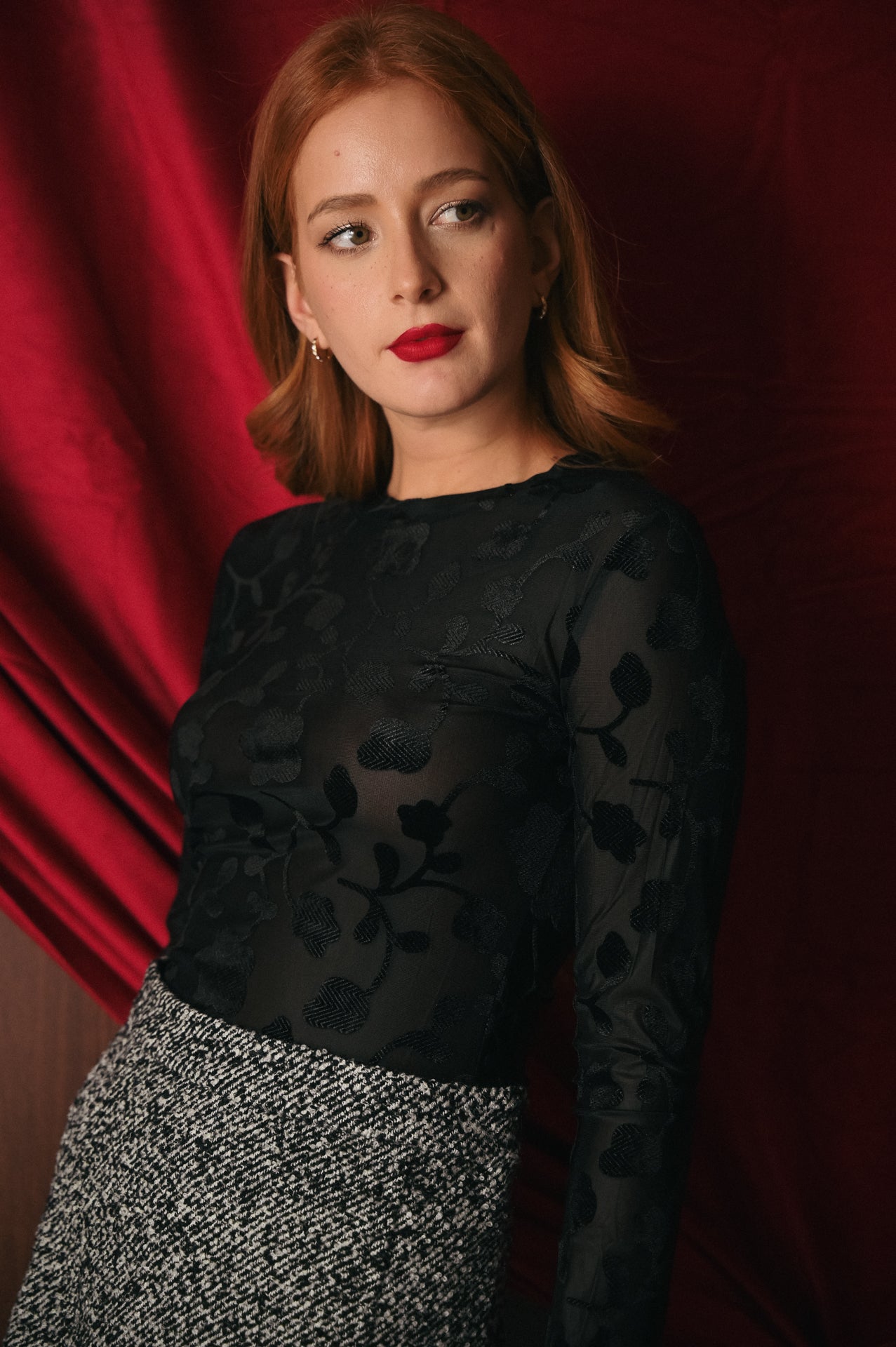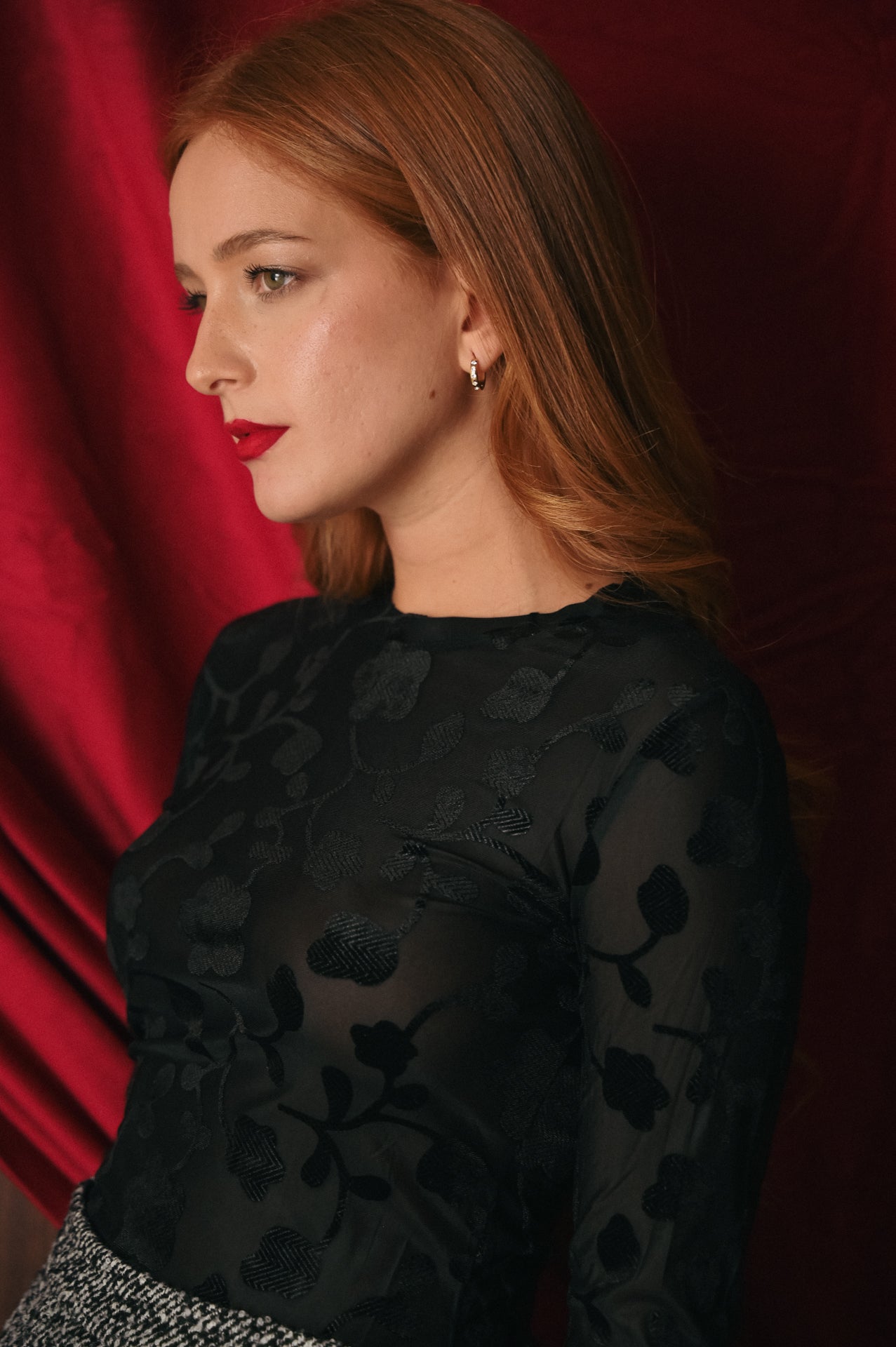 • Effetto Vedo-Non-Vedo: La base trasparente/semitrasparente lo rende un capo perfetto da indossare sotto blazer o giacche aperte, o per un effetto lingerie-as-outerwear di grande tendenza.