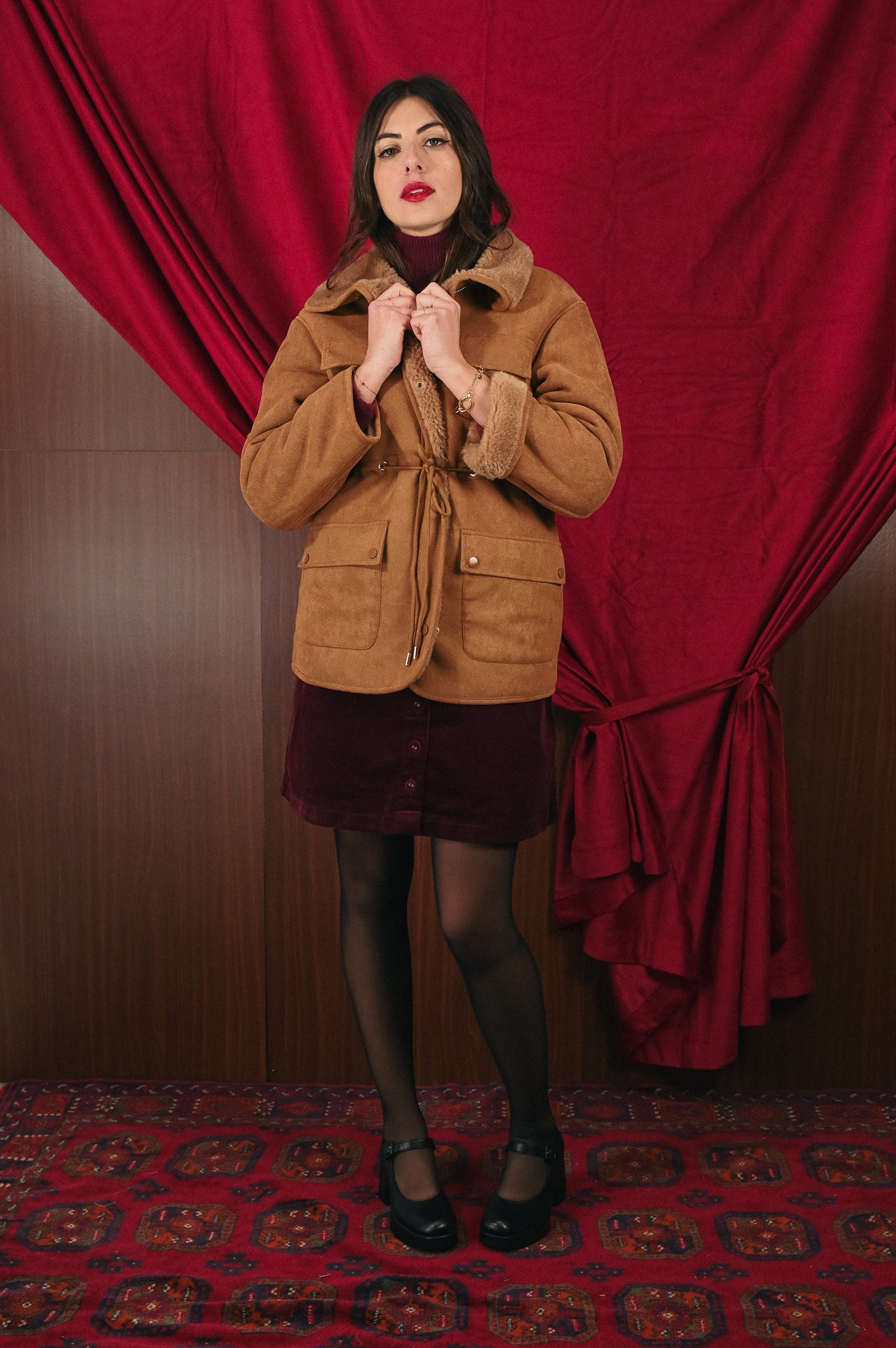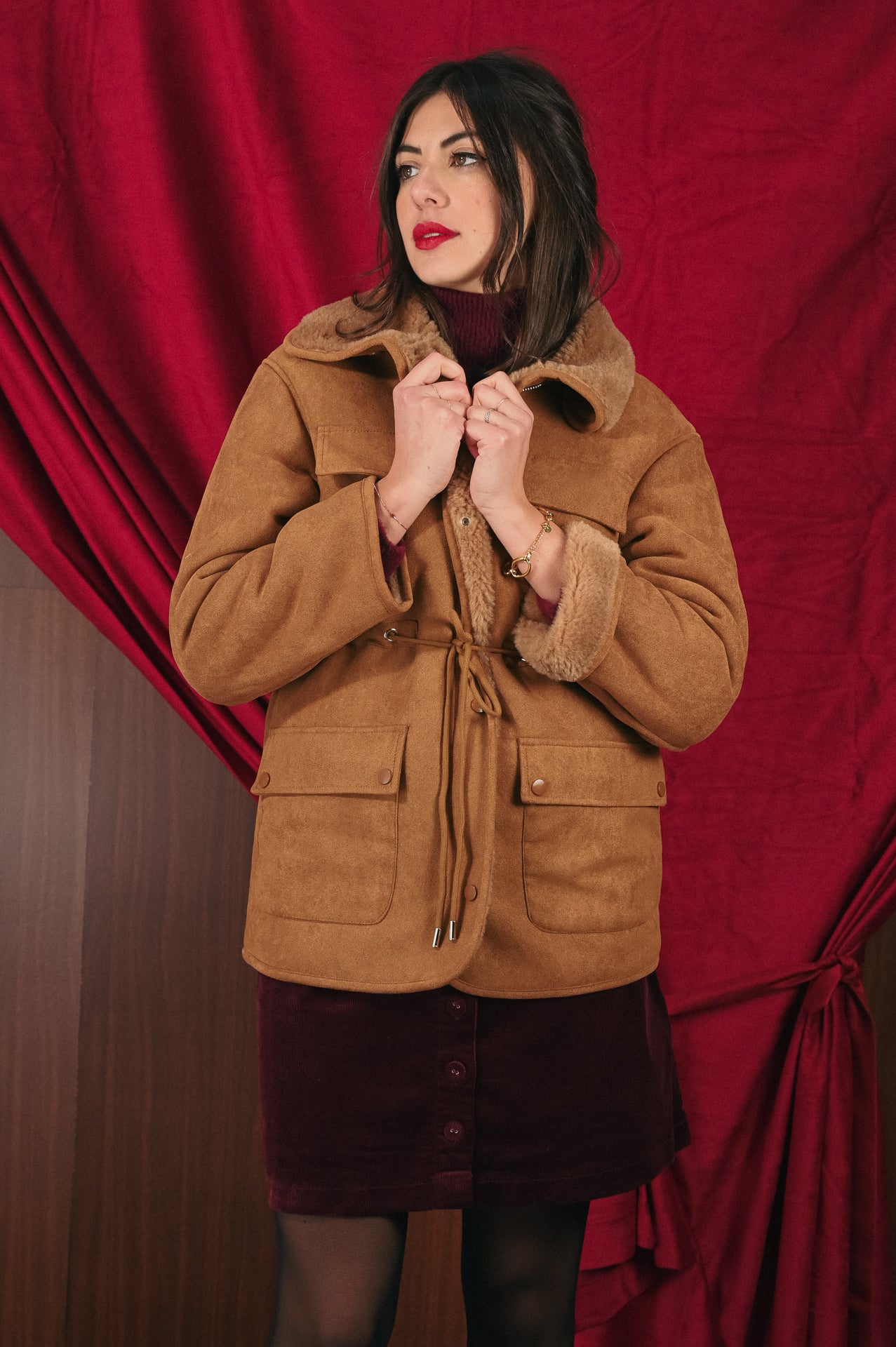 Giacca Invernale Donna Camoscio Finto e Pelliccia Ecologica | Imbottita Coulisse in Vita