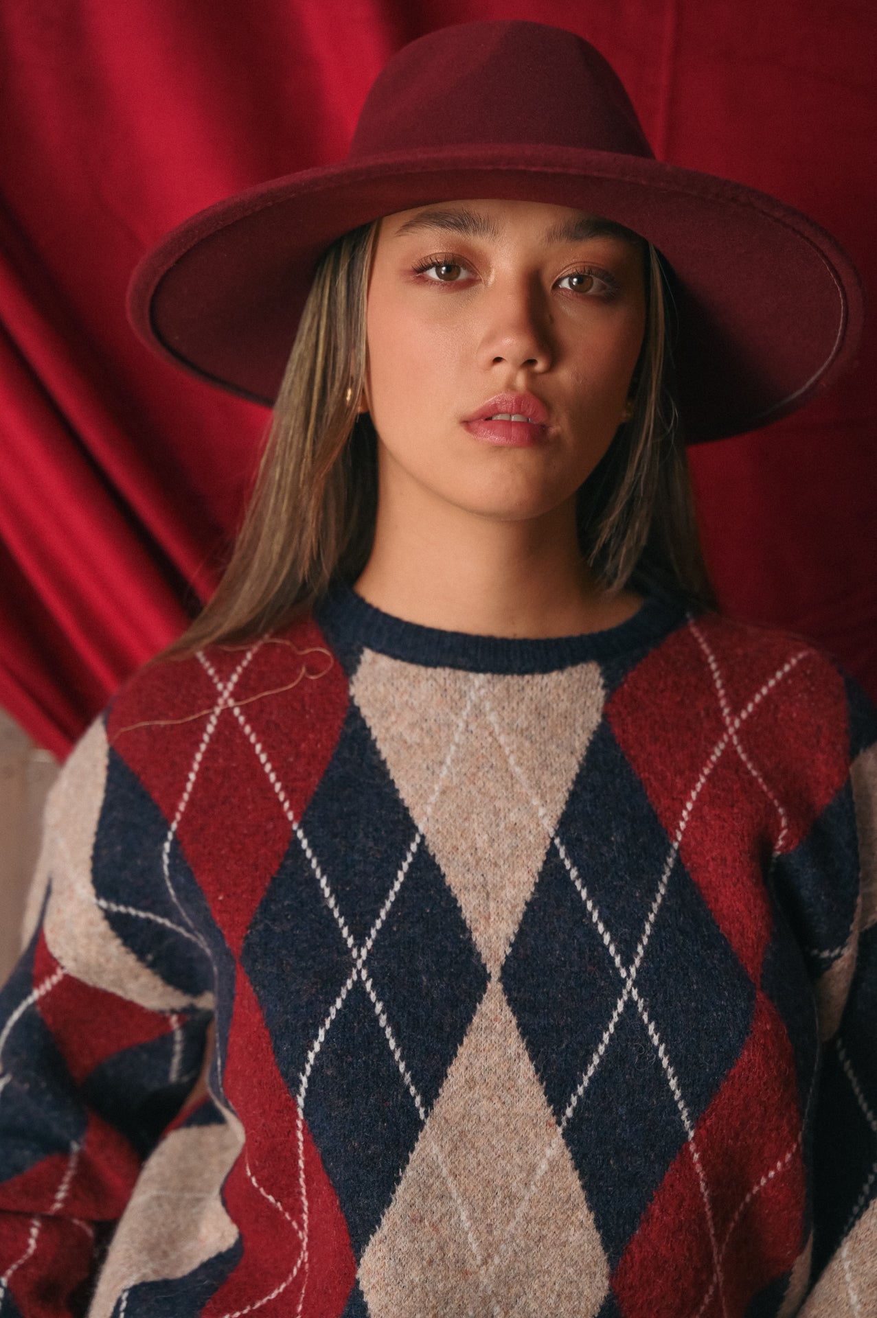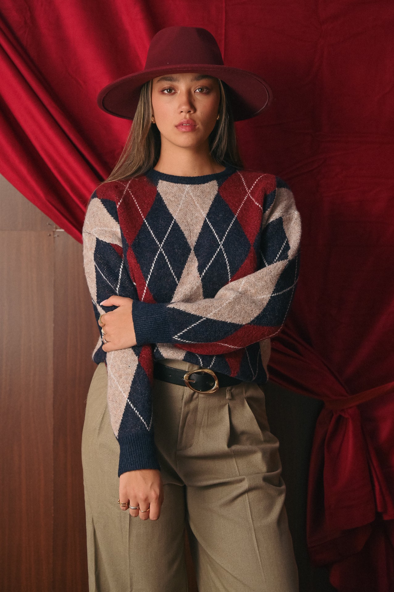 Maglione Donna Fantasia a rombi freddo | Pullover Misto Lana Plaid