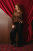 La nostra Blusa in Velluto Ruggine è un vero capolavoro di design, che sfrutta il contrasto tra il tessuto opaco e lussuoso del velluto e la leggerezza impalpabile delle maniche. È il capo perfetto per le tue campagne fotografiche focalizzate sull'eleganza serale e sulle texture raffinate.