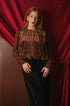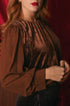 Blusa Donna Velluto Ruggine e Maniche Semi-Trasparenti | Camicetta Elegante Contrasto Texture