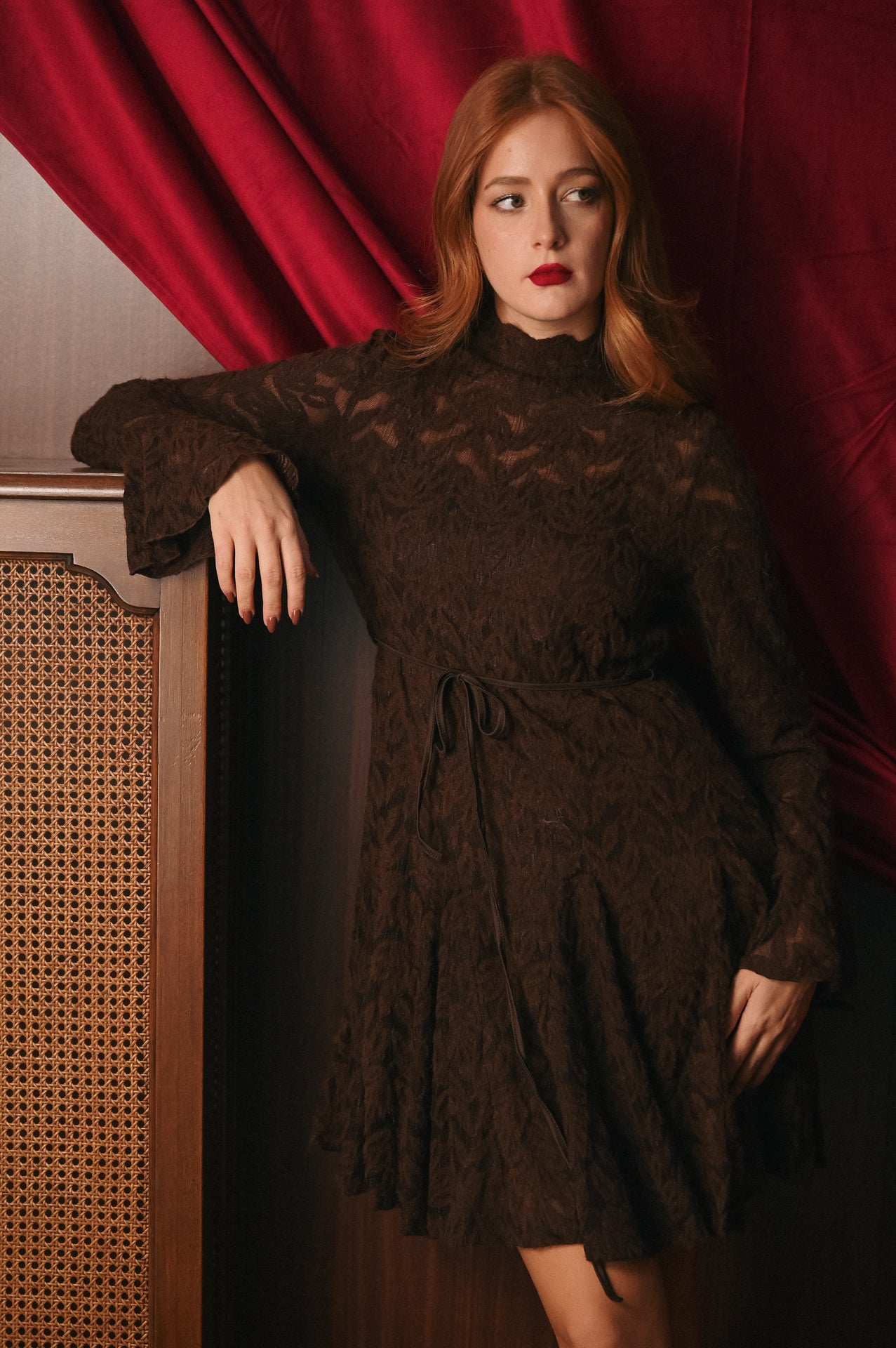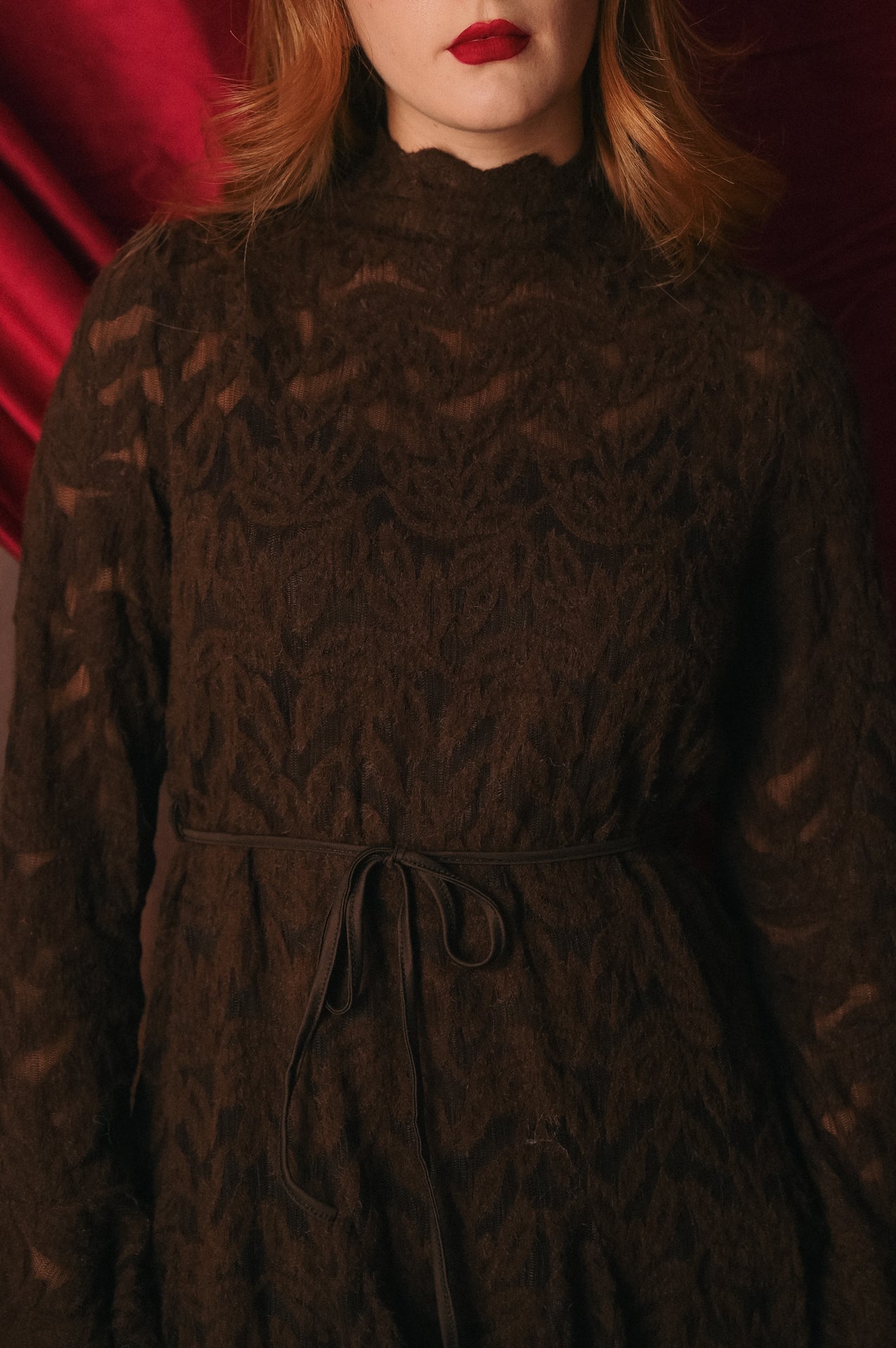 Abito corto marrone con Lavorazione Traforata: Sofisticatezza e Trasparenze