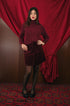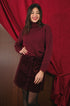 Gonna corta in color bordeaux a motivo costine sottili, chiusura con bottoni verticali , due tasche frontali .