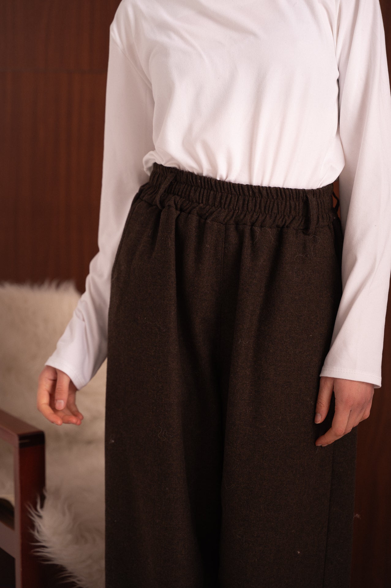 Blusa bianca a manica lunga con scollo a barca