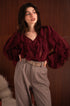 Blusa bordeaux con Volant e Scollo a V