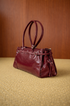 Borsa donna bordeaux in pelle effetto vintage con zip e tracolla regolabile