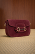Borsa donna in pelle scamosciata prugna con dettaglio metallico
