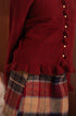 Cardigan bordeaux donna con bottoni dorati e dettagli volant