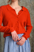 Cardigan Melograno rosso con colletto polo e lavorazione traforata