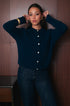 Cardigan blu donna Amelìe misto alpaca e lana | made in Italy