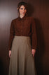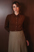 Abbinamento: In foto è abbinata perfettamente a una camicia in velluto a coste color cioccolato e scarpe Mary Jane, ma è splendida anche con maglioni aderenti o dolcevita.