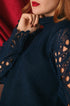 Maglione Blu Notte Elegante con Maniche in Macramè | Misto lana