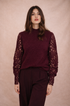 Maglione Bordeaux Elegante con Maniche in Macramè | Misto lana