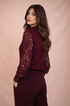 Maglione Bordeaux con Maniche in Macramè: Calore e Trasparenza Glamour