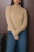 Il suo design presenta un collo alto morbido che avvolge senza stringere, offrendo il massimo comfort e calore per le giornate più fredde. La lavorazione a coste verticali (o a costine) esalta la silhouette e dona texture al brillante colore sabbia.