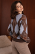 Maglione a fantasia argyle nei toni dall'azzurro mattone e marrone, dal gusto classico rivisitato. La lavorazione crea un disegno a rombi elegante e senza tempo, facile da abbinare sia a look casual che più curati. La vestibilità è regolare e confortevole, con una linea morbida che segue il corpo senza segnare. Perfetto con pantaloni sartoriali, denim o velluto per la stagione autunno/inverno.