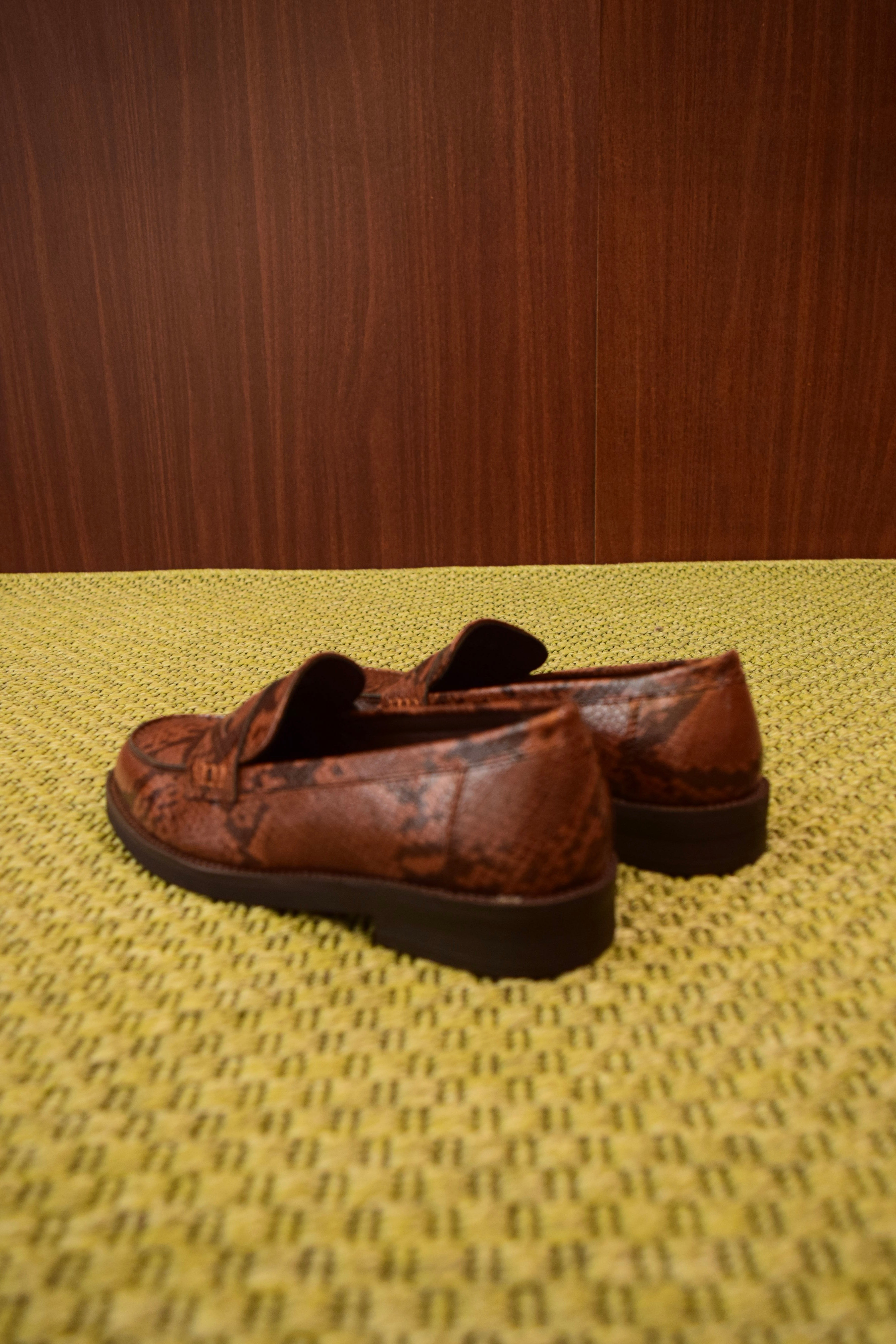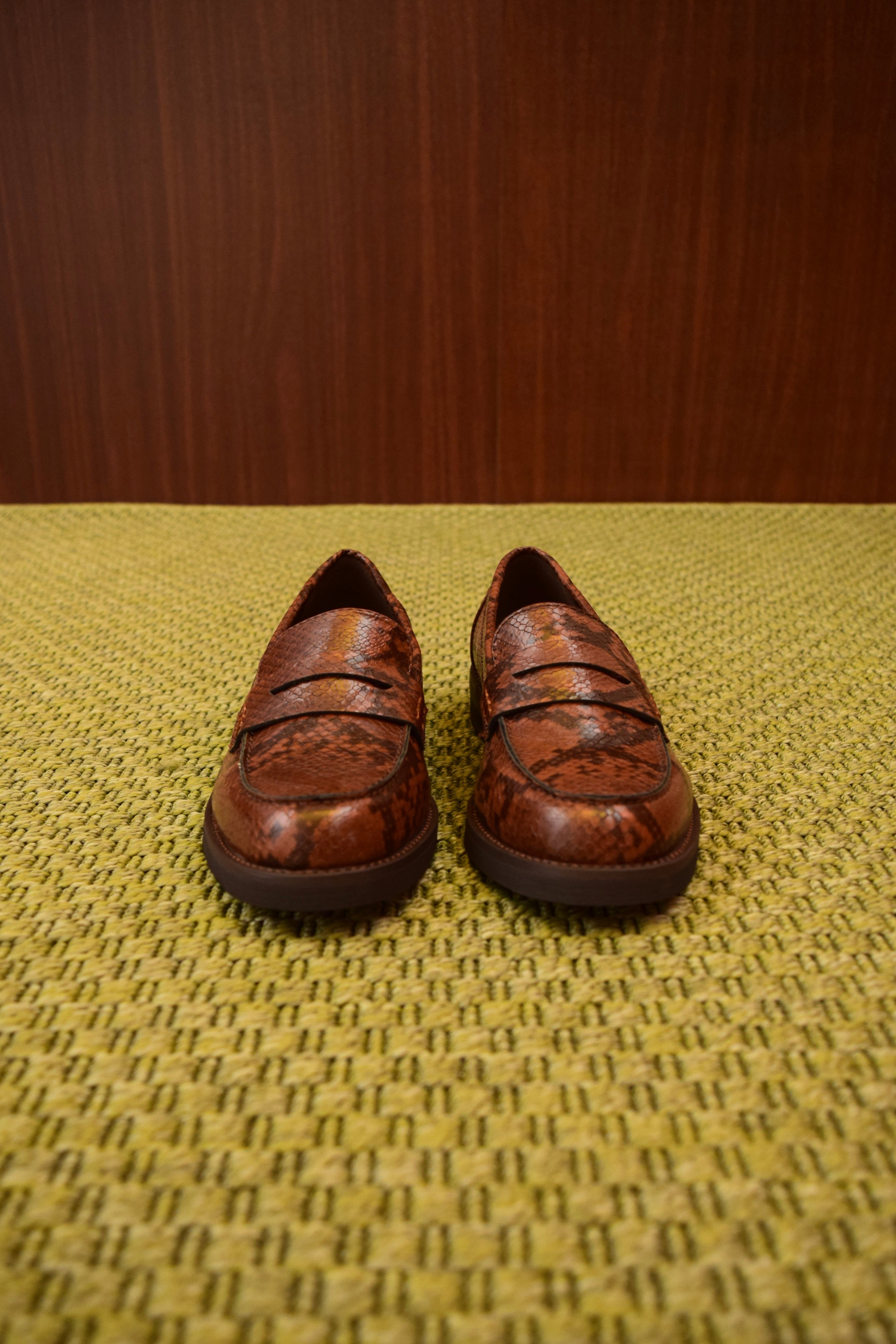 Aggiungi un tocco esotico ed elegante al tuo stile con questi mocassini da donna in pelle vegana con stampa pitone. La texture e il colore di tendenza rendono questa scarpa un accessorio versatile e d'impatto, perfetto per elevare qualsiasi look.