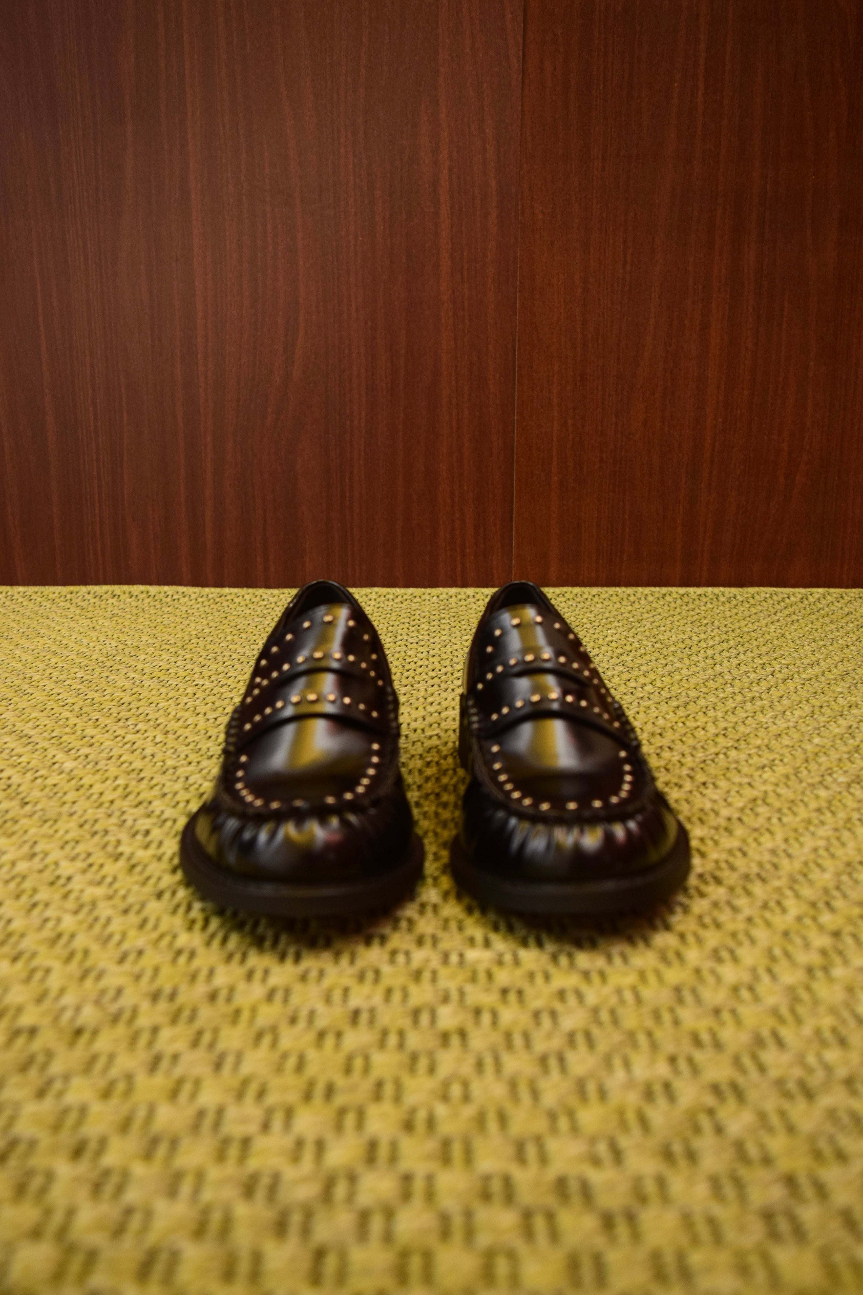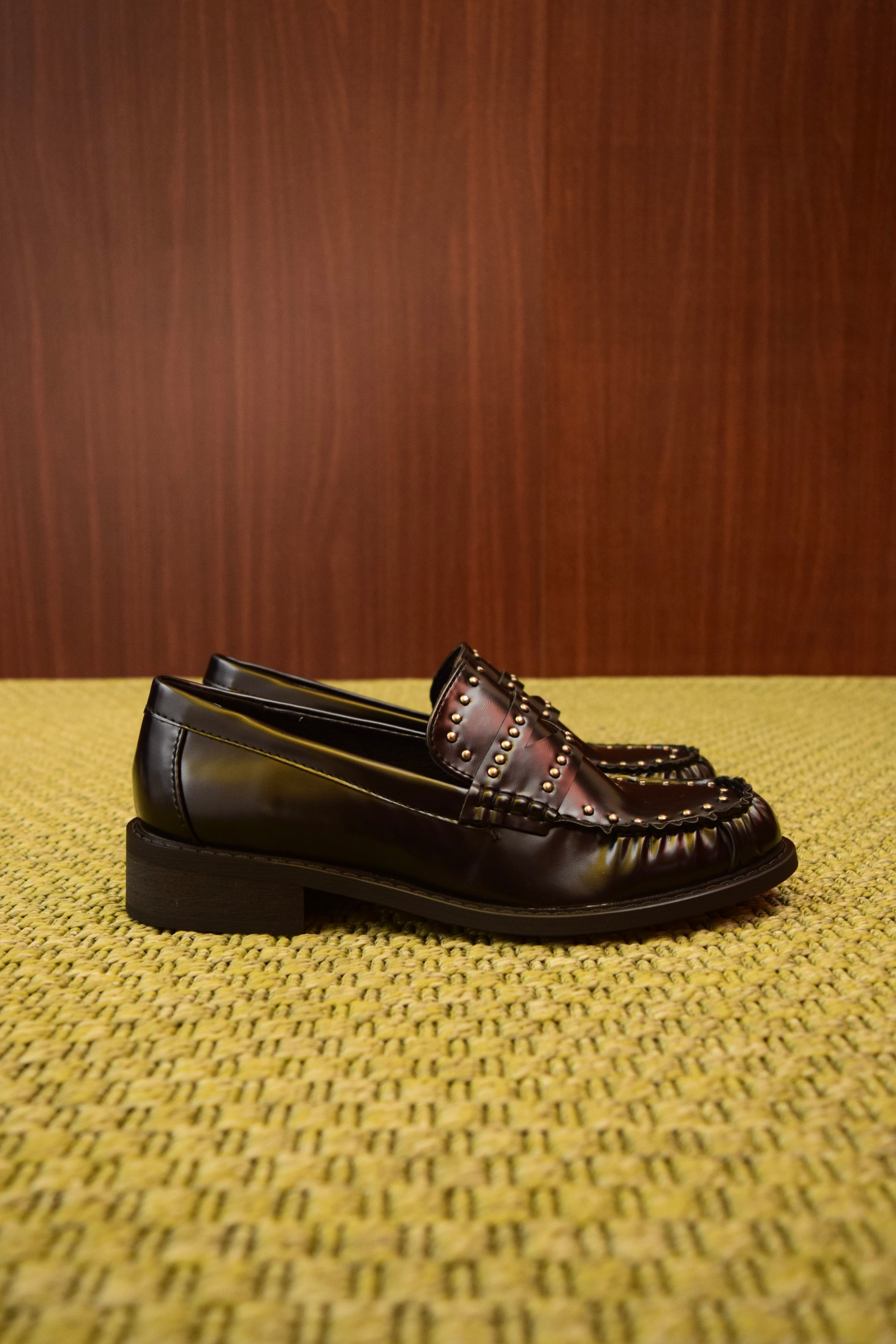 Il design classico del mocassino è reinventato da una pioggia di borchie metalliche, che conferiscono un tocco rock e contemporaneo a ogni tuo passo. Sono l'accessorio perfetto per chi cerca di unire l'eleganza a un'attitudine forte.