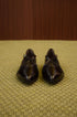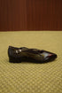 Scarpe Ballerine Mary Jane Incrociate in Vera Pelle Nera Lucida