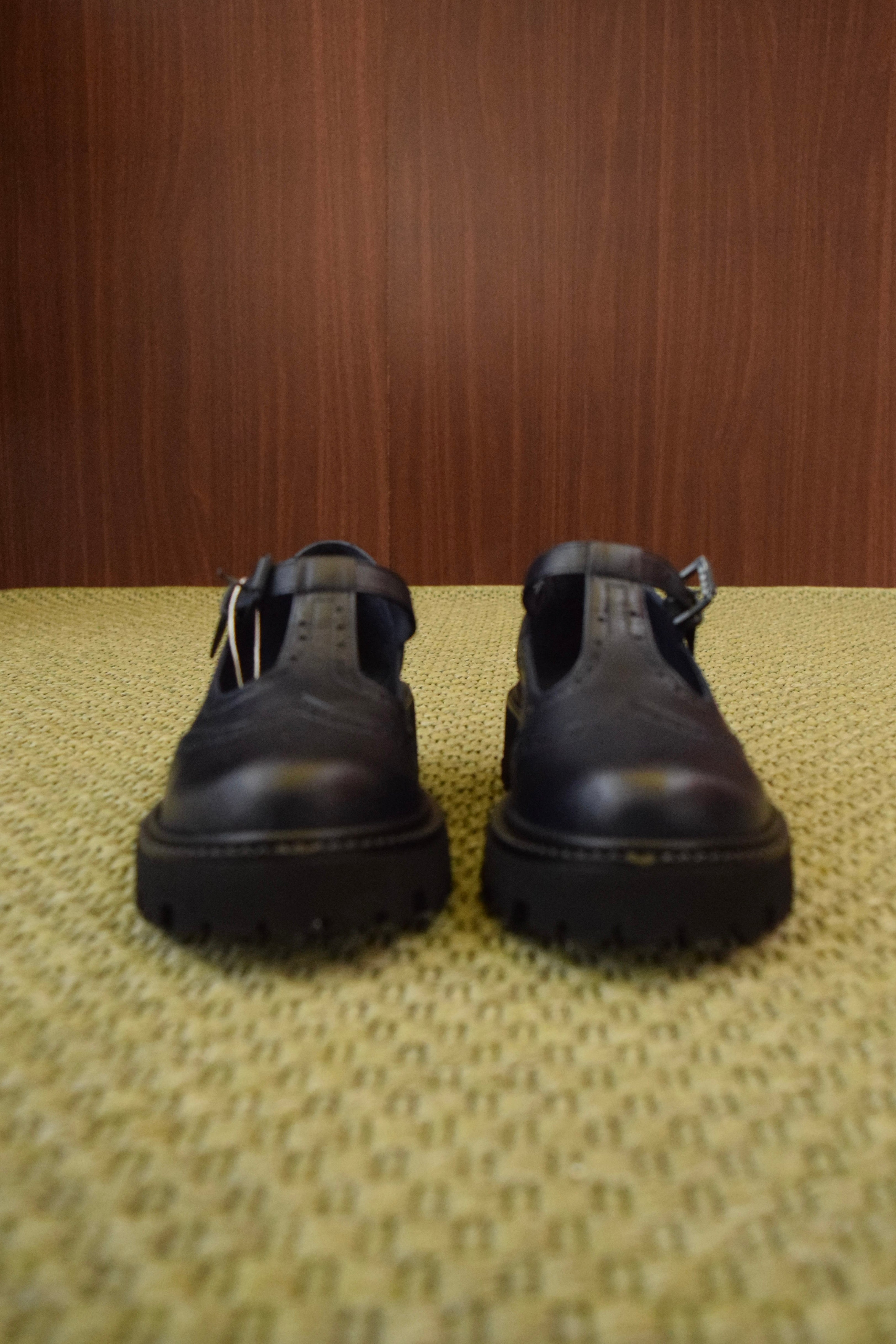Design Ispirato: Un'interpretazione moderna del classico modello Mary Jane/T-Bar, arricchito dai dettagli traforati tipici delle Brogue sulla punta e sui lati.