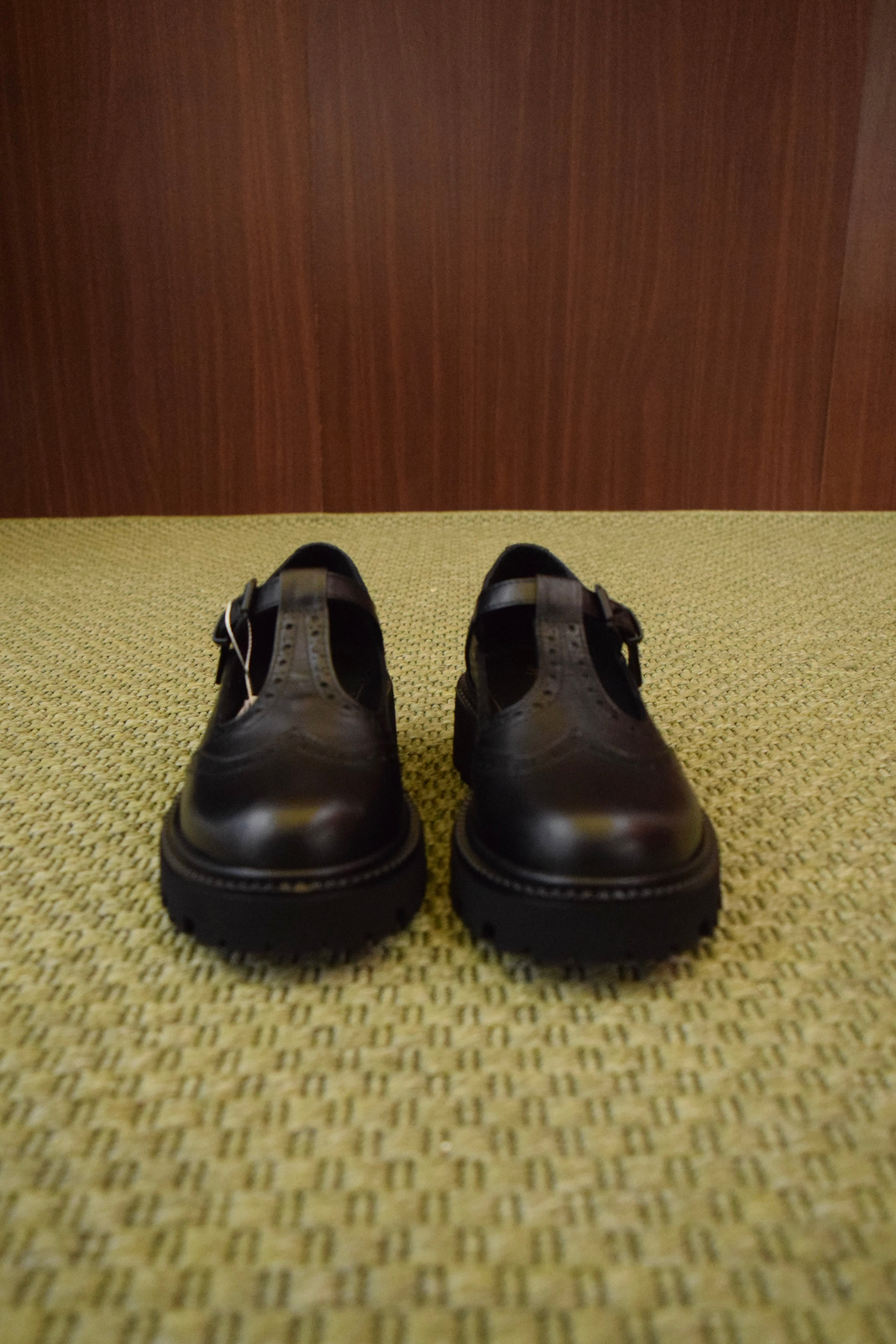 Design Ispirato: Un'interpretazione moderna del classico modello Mary Jane/T-Bar, arricchito dai dettagli traforati tipici delle Brogue sulla punta e sui lati.