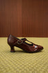 Scarpe Mary Jane da donna in pelle lucida con tacco rocchetto bordeaux