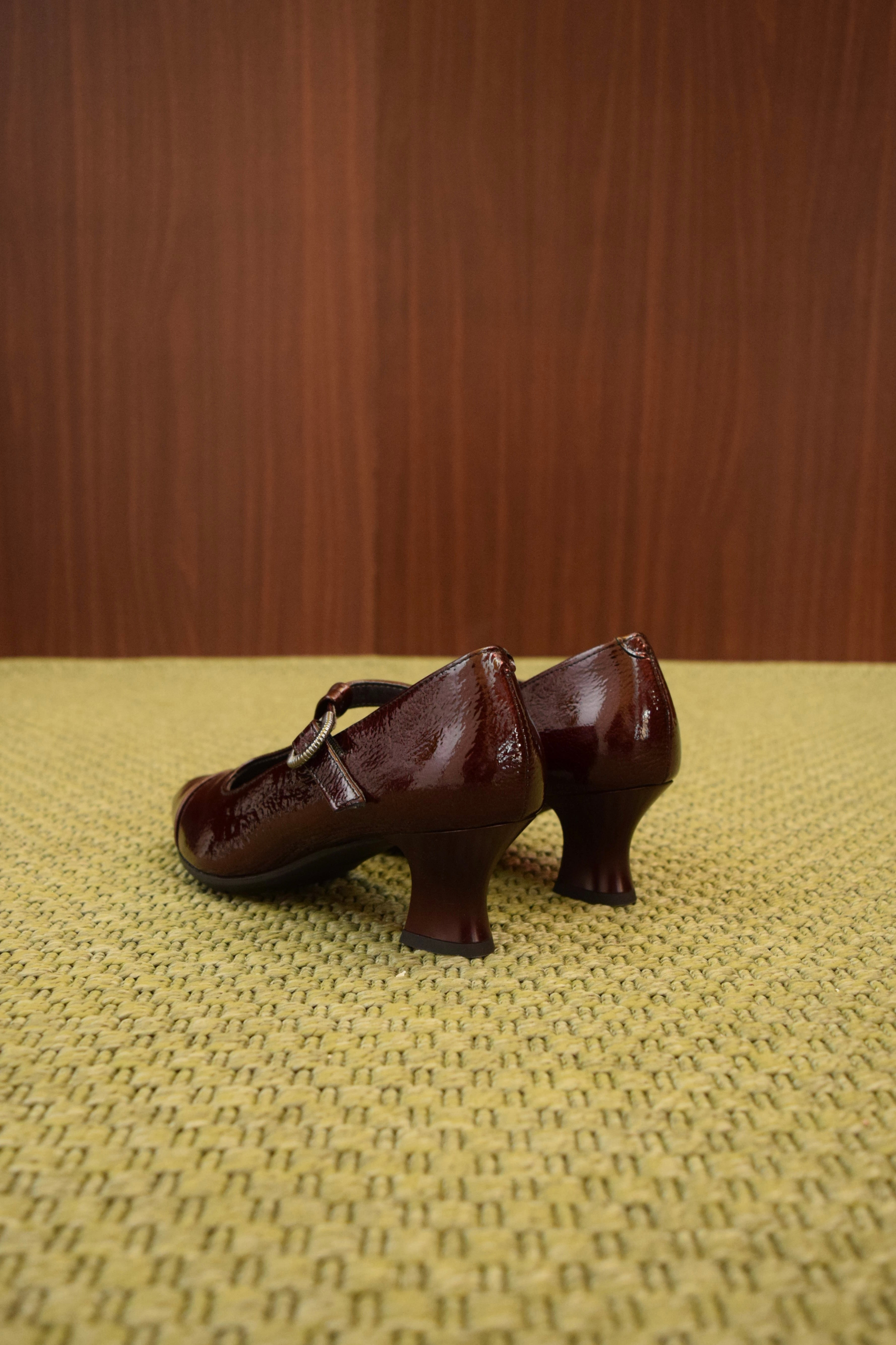 Aggiungi un tocco di eleganza vintage al tuo guardaroba con queste splendide scarpe Mary Jane da donna. Realizzate in pelle lucida color bordeaux, uniscono il fascino classico a uno stile moderno e raffinato. Il tacco a rocchetto e la punta affusolata garantiscono una silhouette femminile e slanciata, mentre il cinturino a T con fibbia regolabile assicura una calzata sicura e confortevole. Perfette per un look da ufficio, una serata speciale o semplicemente per distinguerti con classe.
