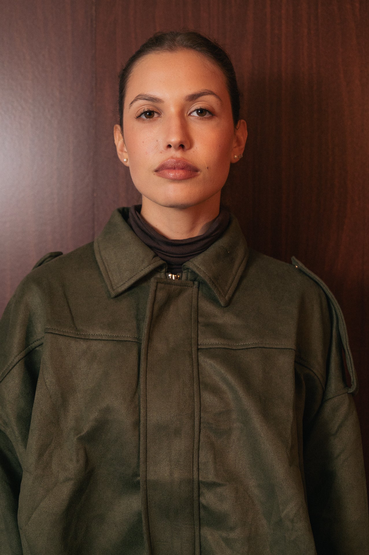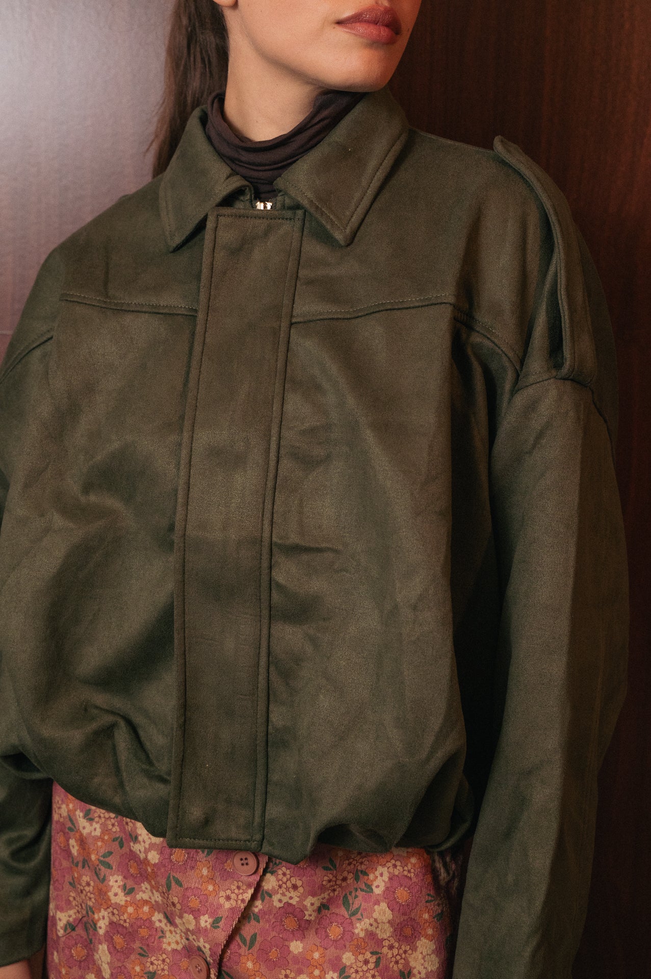 Bomber Kaki Effetto Suede Scamosciato