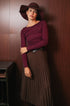 Top Aderente a Maniche Lunghe Bordeaux - Collo a Barca Arricciato